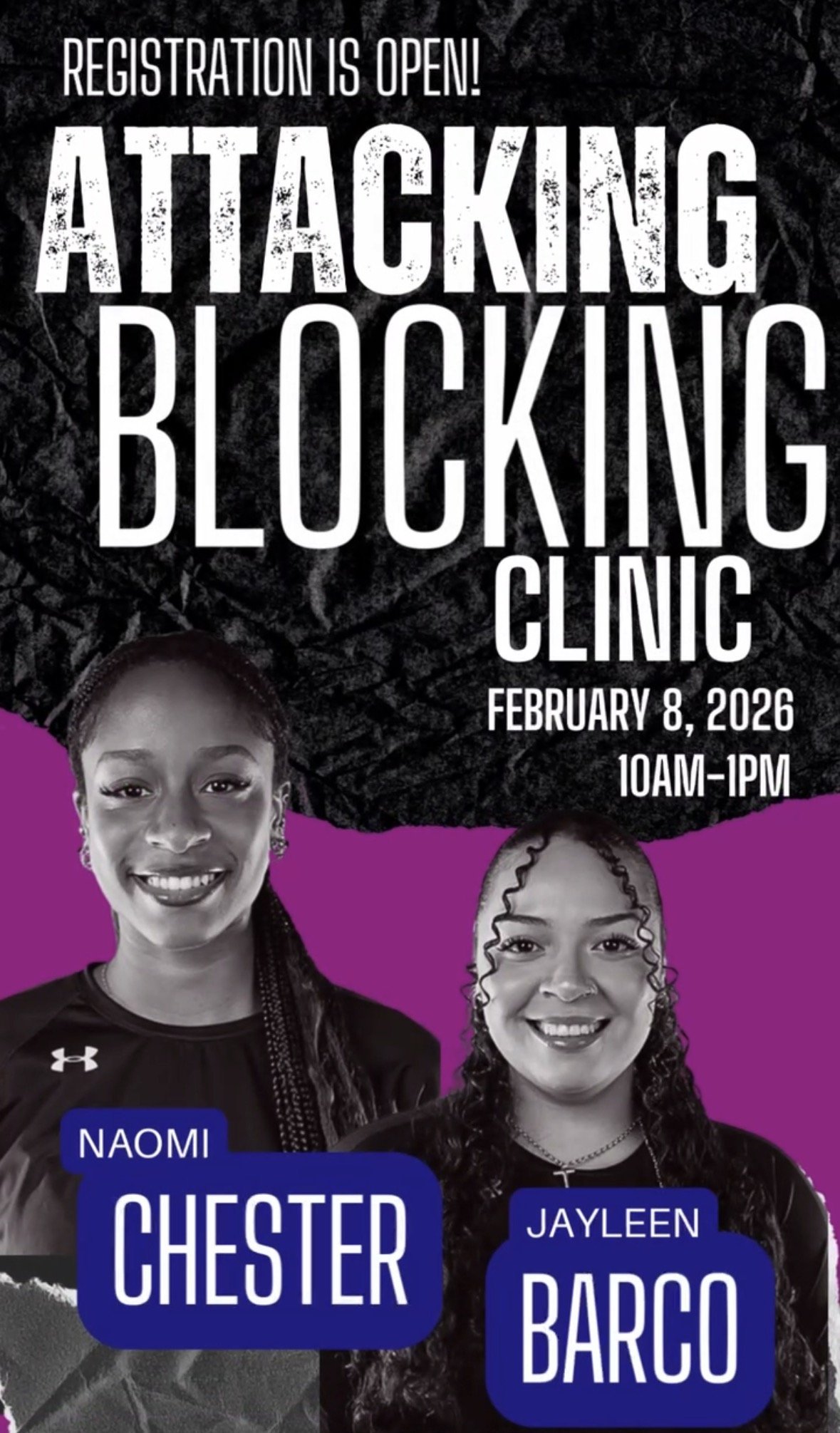 With guidance from two standout collegiate athletes, players will experience high-level instruction on front-row timing, proper transitions off the net, and the mental strength that defines great teammates and leaders. This is a great session for hitters to gain confidence and feel more comfortable attacking more often. Register now, space is limited.